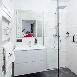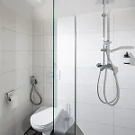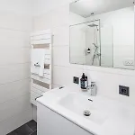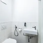 Επιπλέον, υπάρχουν στεγνωτήρας μαλλιών και πετσέτες. Το διαμέρισμα διαθέτει μπιντές, ξεχωριστή τουαλέτα και ντους.